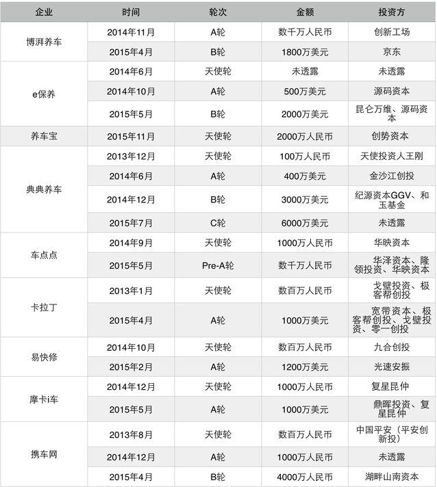 成立至今,博湃養(yǎng)車曾先后取得兩輪融資,其間2014年11月取得立異工場的數(shù)千萬人民幣A輪融資,2015年4月宣告完結B輪1800萬美元融資。但受制于資金鏈缺失、盈利形式單一、本錢窘困等要素,博湃養(yǎng)車最終沒能防止C輪死的命運。